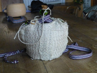 Un premier exemplaire a été recouvert d'une housse constituée d'un tissage manuel de lin tramé "nid d'abeille" et d'une toile de chanvre, enserrant une nappe de coton naturel. Cette protection trouve son inspiration sur une gourde de "pèlerin" conservée au Musée du Caire, datée debut XIVème... Le deuxième exemplaire devrait recevoir un autre genre de protection...